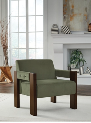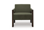Get your modern sophistication on with this chic accent chair. Its rich olive green velvet upholstery is both luxurious and inviting, while an espresso-finished wood frame provides a warm, grounding element. The chair's clean lines and minimalist design make it a versatile piece that complements a variety of decor styles.
