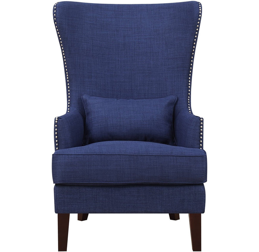 The Kori Accent Chair boasts a charming array of vibrant color options as well as a refined design. Resting on dark espresso legs, the Kori's crisp lines, elegant long back and chic studded trim make this a one-of-a-kind upholstered sensation in any home.