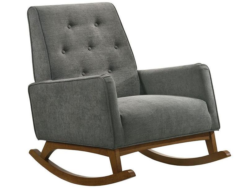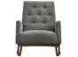 The Marius Rocker Chair is going to look amazing in your home! This rocker can be displayed anywhere, from a living room to a bedroom. The button tufting along the back cushions instantly adds extra flair to this already stylish piece. The warm walnut finish on the gliders pairs beautifully...