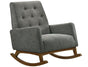 The Marius Rocker Chair is going to look amazing in your home! This rocker can be displayed anywhere, from a living room to a bedroom. The button tufting along the back cushions instantly adds extra flair to this already stylish piece. The warm walnut finish on the gliders pairs beautifully with the transitional color of the fabric. The foam cushion seat will keep you plenty comfy while you curl up with your favorite book.