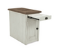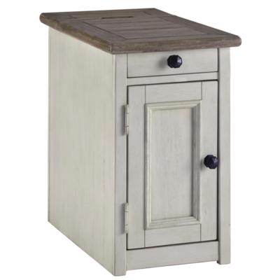 Display and contain your favorite things with the Bolanburg Chair Side Table. Its textured antique white finish creates a vintage two-tone look, while outlets and USB ports provide functionality. This is a piece you will enjoy for years to come. Pull-out tray Minor assembly required Two-tone antiqued finish Lift-top back...