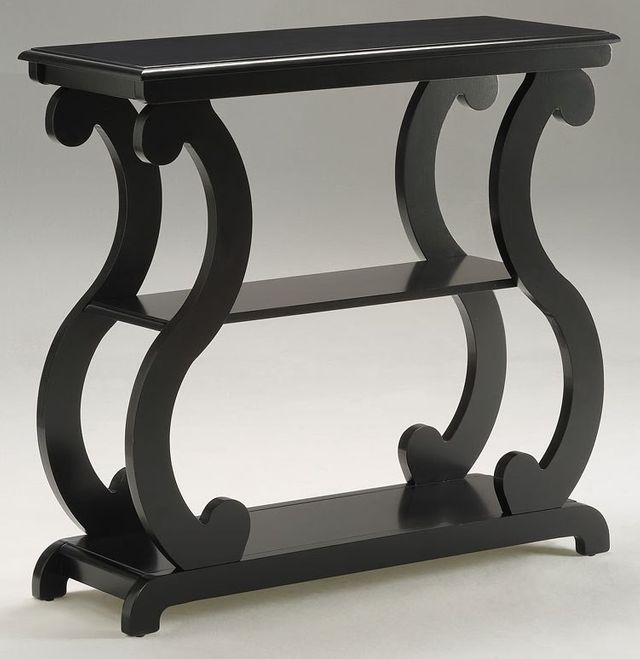Form and function are both served well with this versatile Console table. Elegant scrolls lend a sophisticated profile while multiple shelves provide ample space for storing and displaying keepsakes and other items.