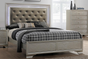 The Lyssa Bed is chic and shiny. The champagne colored bed features a crocodile embossing and a beveled trim. The tufted upholstered headboard features 3-way-touch LED lighting for a soft reading light.