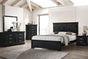 The Amalia collection will energize your bedrooms. The Amalia bedroom set is finished in a two-tone black with textured black drawer fronts. The drawers all feature crystal pull handles. In addition, the headboard is finished with black crushed velvet fabric with crystal tufting inserts.