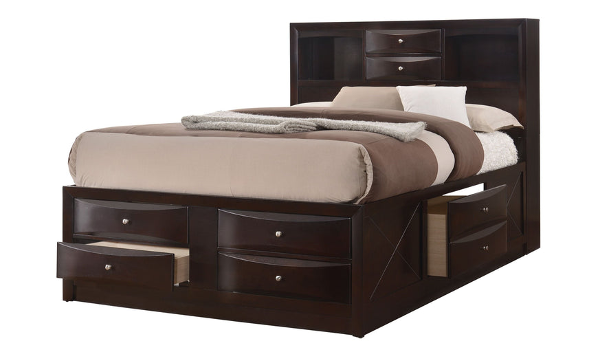 Classic, traditional style with contemporary touches, the Emily storage bedroom set reflects a simple, easy, and refined attitude. This set will definitely complete your room in elegance, with its curve-line design offering a strong impression at first sight. The bed's contemporary finish, along with its generous built-in storage space and room for your Queen-sized bed, addresses a multitude of your biggest living space issues all in one go.