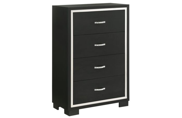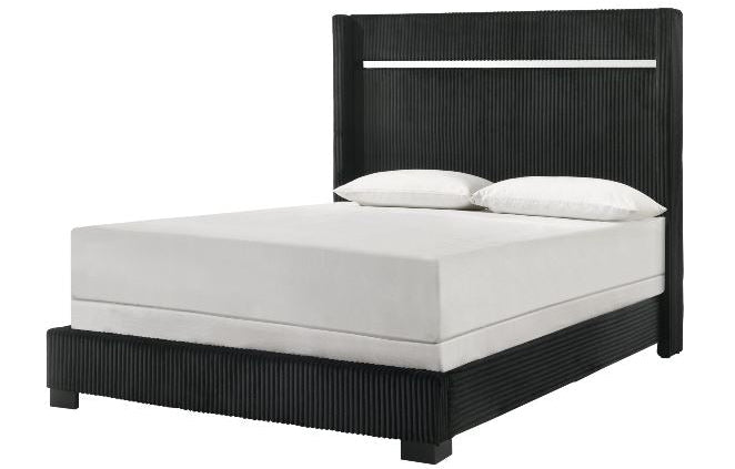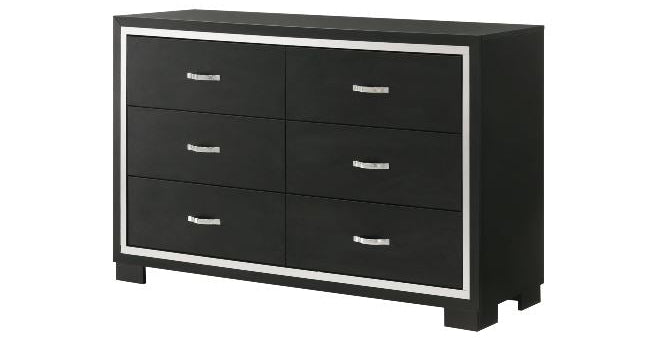 This stylish suit perfectly combines contemporary style with traditional refinement. The set features a sleek bed frame, matching nightstands, and a roomy dresser, all beautifully finished in a rich black color. The Genn set exudes modern elegance while being meticulously crafted for endurance. Its simple lines and high-quality workmanship offer a timeless aesthetic. This exclusive collection will transform your bedroom into a refuge of refined luxury, combining comfort and great style.