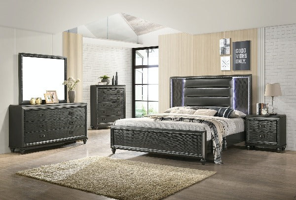 Create the bedroom of your dreams with Moonstone Bedroom collection. With framed fronts for cases, framed molding on headboard and footboard with a touch of modern setting on its LED lighting on headboard. Match this collection with your existing furniture for a modern yet simple bedroom.