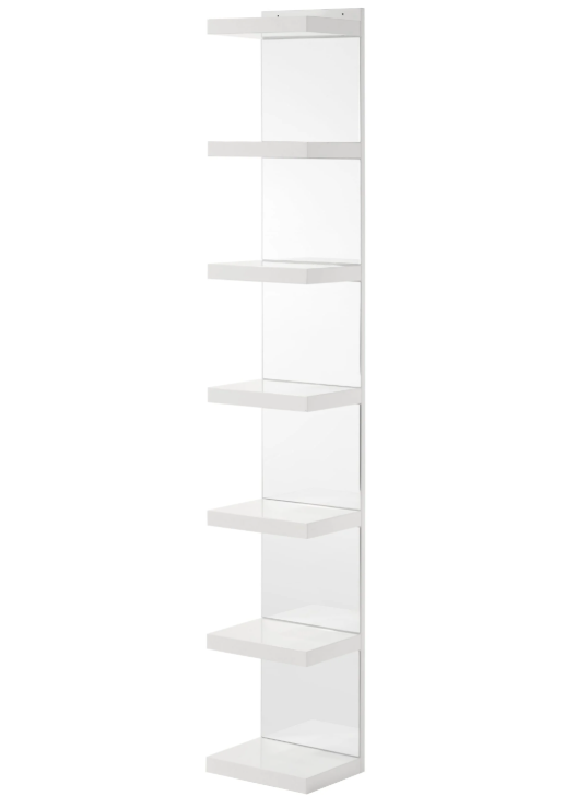 This sleek, modern shelving unit offers a perfect blend of style and functionality, making it a versatile addition to any room. With clean, minimalist lines and a crisp, white finish, it seamlessly complements contemporary decor, adding a touch of elegance and sophistication to your space. Each spacious shelf is designed to showcase your favorite decorative pieces, plants, or books, providing a visually appealing display while maintaining an open and airy feel. The mirrored back lets you see more of your treasures and bounces light around the room. Its sturdy structure ensures stability, allowing you to store and exhibit items confidently. Ideal for living rooms, home offices, or reading nooks, this shelving unit enhances any space with its refined aesthetic and practical design, embodying both beauty and utility in one piece.