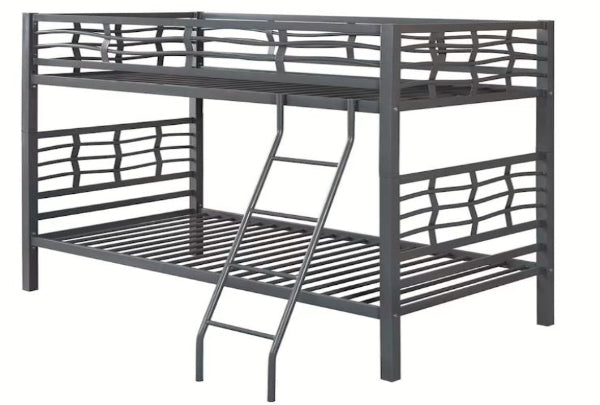 Add a touch of character to a child's room or guest room. This bunk bed exudes fun, functional style. It separates into two single beds, perfect for shared bedrooms and sleepovers. Its eye-catching design features whimsical, wavy lines offset by a bold, sharp looking frame. A full-length guardrail helps keep the top bunk safe and secure to give you and your guests peace of mind.
