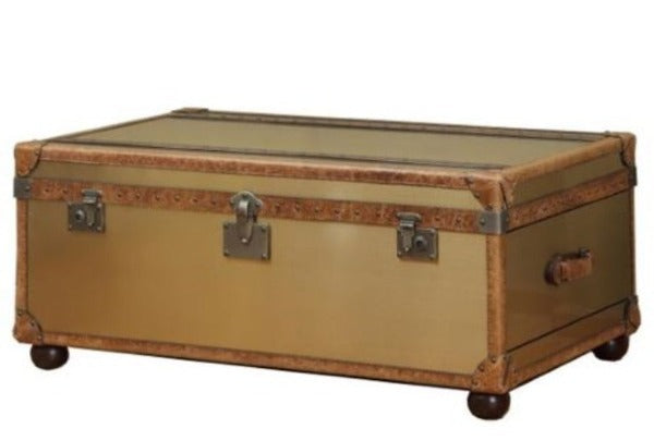 The Campania two-drawer cocktail table evokes a time not too long ago when voyagers took long trips on steam ships across the Atlantic, carrying their precious belongings with them in beautiful trunks. Updated for today’s needs, the Campania works well as a coffee table, bedside storage piece or accent item, and can hold blankets, pillows and even keepsakes. It features a tough hardwood interior, high-quality metal fittings and supple exterior, covered in top-grain leather.