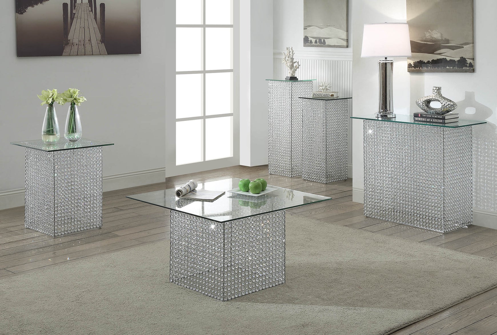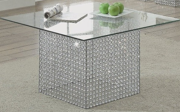 34" x 34" x 18"HCrystal Square Base34"Dia Square Glass Top1,700 Hand Tied Individual Crystals