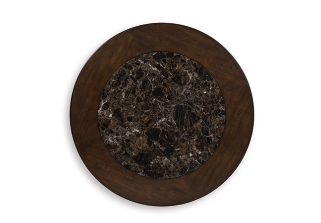 This coffee table is nothing short of stunning. A rich, warm brown finish exudes opulent elegance, while ornate metal legs add a touch of timeless sophistication. It's perfect for displaying your delicious decor in grand style. Made with birch veneer, decorative laminate and MDF substrate Top with faux marble laminate...