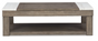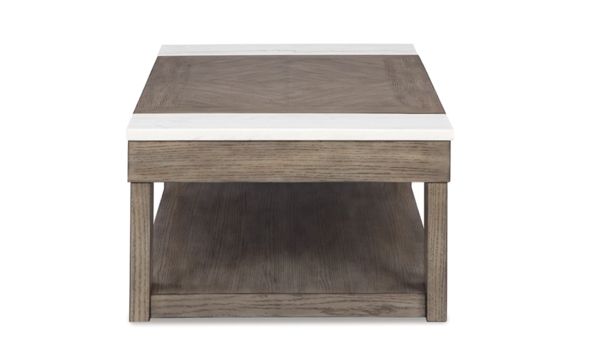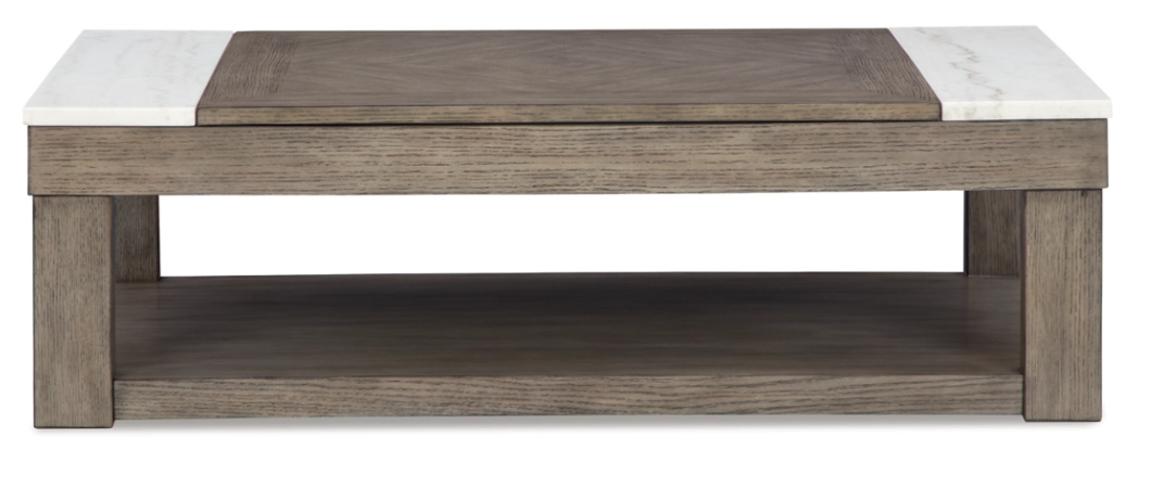 Welcome casual, contemporary style and functionality to your home. This lift-top coffee table is equipped with a convenient lift-top surface for working or dining from your sofa, as well as a spacious lower shelf to display treasured items. Natural white marble accents deliver a mixed-material vibe, while the grayish brown...
