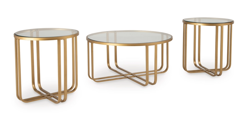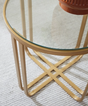 These coffee and end tables set the perfect stage for displaying favorite books, unique trinkets or serving trays. With trendy goldtone frames and clear glass tops, their versatile design effortlessly suits modern interiors. Whether acting as the focal point for a social soiree or a landing spot for your morning coffee, this set of tables makes contemporary living all the more chic.