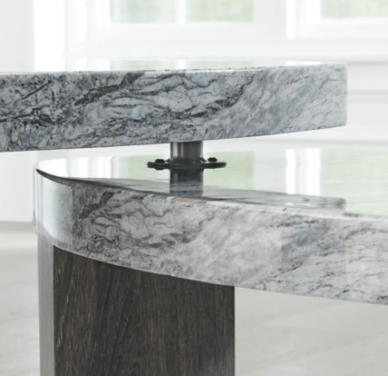 Striking contemporary form, meet can’t-miss function. This stacked coffee table pairs the look of faux gray marble with a weathered gray wood grain for a simply chic approach to monochromatic style. Make the most of your space with its cantilevered design—simply roll out the pivoting lower table when you need...