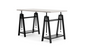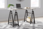 - Sawhorse legs with gunmetal finish