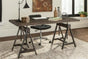 The metal frame is finished in a hand-brushed weathered gunmetal, with the desk in a burnished cognac color. This desk is height-adjustable in two-inch increments, so your dreams and ideas are free to rise to new heights at this writing desk. This item is a Floor Model Special! Height Adjusts...