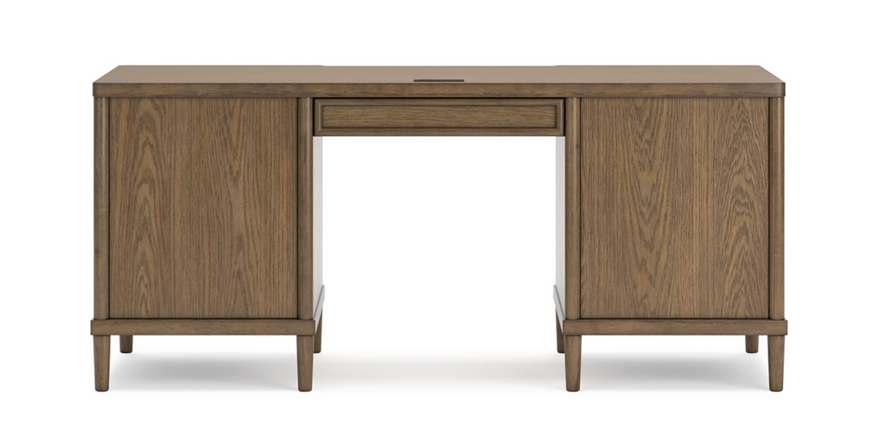 Give your mid-century modern decor that finishing touch with this home office desk. Spacious drawers with unique wooden drawer pulls enhance the design with stunning style. This desk takes minimalism to the max.