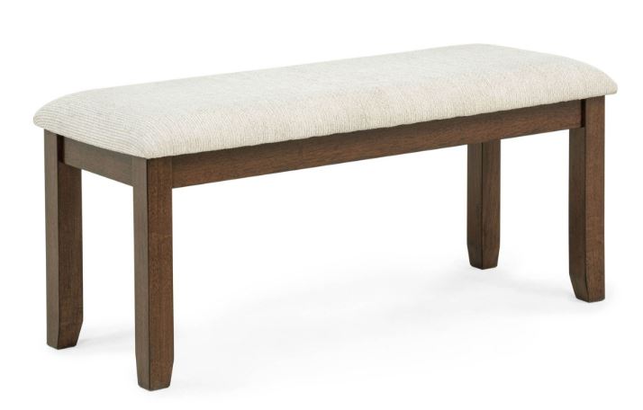 Timeless and refined, this dining group features a rich wood finish and clean-lined silhouettes that bring a sense of warmth and tradition to the dining area. The tabletop showcases an eye-catching veneer pattern that adds visual depth, while the tapered legs offer a classic touch. Each chair combines a gently curved backrest with an upholstered seat and inset panel for enhanced comfort and support. The separately available bench offers even more seating options. Designed to accommodate both everyday meals and special gatherings, this set blends durability with understated elegance for a look that endures.
