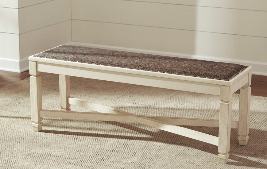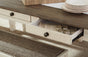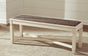 Made of veneers, wood and engineered woodTwo-tone textural finish; antique white with weathered oak finished top6 drawers; 3 each on each sideSeats up to 6Bench sold seperately