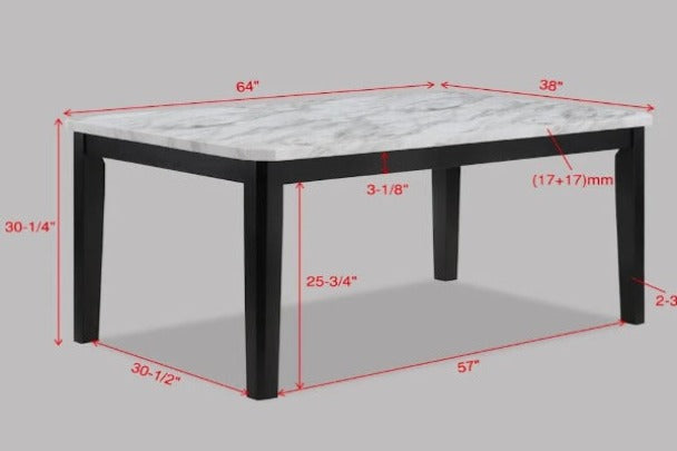 This gorgeous dining table set is a perfect blend of traditional and modern design elements. This table features a stunning faux white marble table top that is both elegant and durable. This upholstered dining chair is a stylish and functional piece of furniture. The black finish on the table and chair legs contrasts beautifully with the white marble-like top, creating a stylish and eye-catching piece of furniture. With this transitional dining set, you can expect a blend of classic elegance and modern functionality in your dining area. It will be perfect for both formal and casual dining settings.