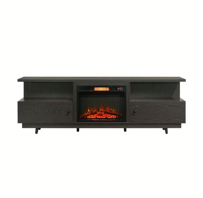 Introducing the Hyler Tv Stand in Espresso, the perfect blend of functionality, style, and convenience for your home. With its stunning design and practical features, this fireplace will become the focal point of any room. Including a 23" fireplace insert and featuring open shelves and cabinet storage, the sleek silhouette and clean lines exude sophistication, making it a stunning addition to any modern or minimalist interior.