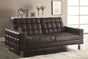 This brown faux leather sofa bed can serve as the focal piece of your living room with its elegant tufting on the seat and back. The sofa bed's hearty, kiln-dried construction is made for heavy use and stability. The sofa features beautiful chrome legs that contrast nicely against its brown coloring, arm rests with cup holders to keep drinks within arms reach, and an independently functioning split back. Throw in a bit of sinuous spring decking and high-density foam and you have a supremely comfortable sofa, perfect for you and guests.