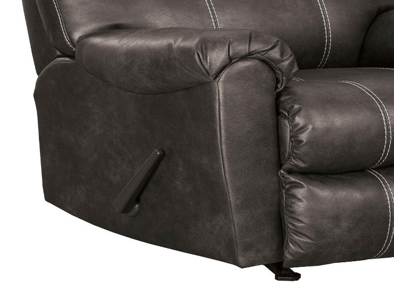 Featuring a casual contemporary design, this leather-look recliner offers a comfortable spot to relax. Additionally, this recliner has a plush bustle back and two double rows of vertical accent stitching to pull together a stunning look.
