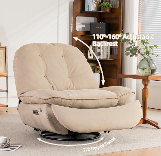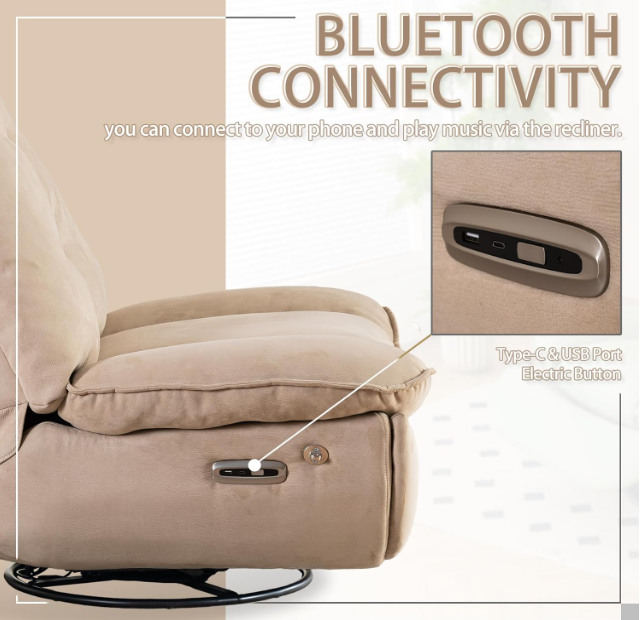- User-Friendly Design: Dolonm‘s power rocker recliner has built-in USB and Type-C ports and a phone holder, so you don't need to worry about your phone cutting out while watching a movie and getting tired of holding it for long periods of time; There is also storage at the bottom of the armrests
