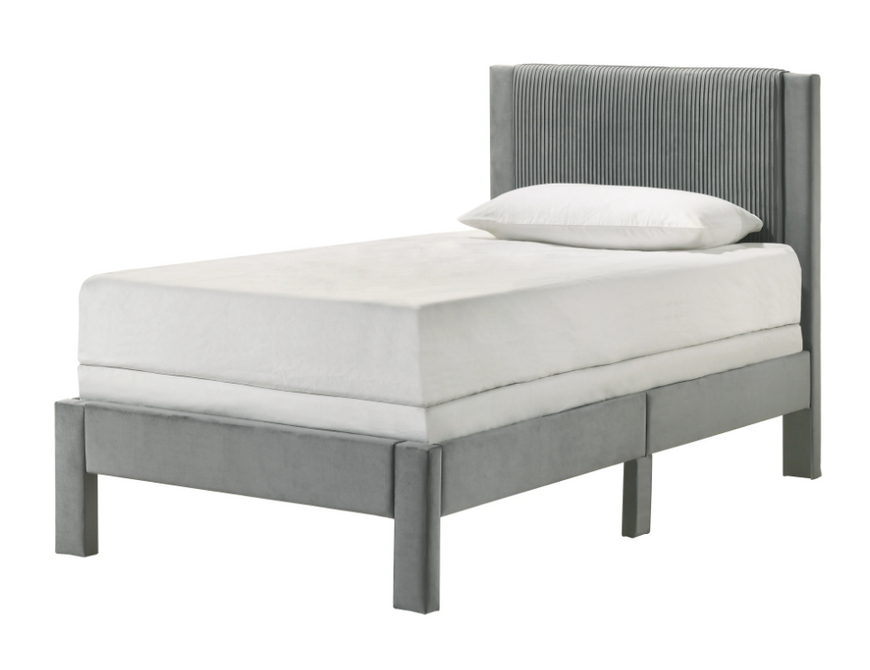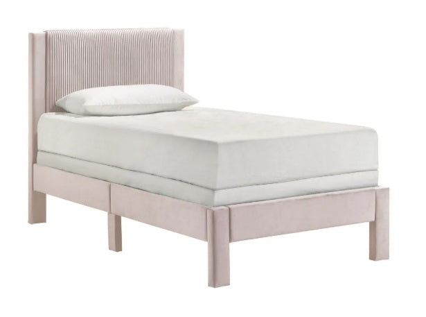 Experience the perfect blend of minimalist design and modern comfort with this elegantly understated bed. Its clean, sharp lines and a sophisticated pink finish create a serene and stylish foundation for any contemporary bedroom. The bed features a streamlined silhouette with a plush, upholstered headboard that boasts a tastefully ribbed texture, providing both visual interest and a comfortable surface to lean against while reading or relaxing. The low-profile frame, supported by sturdy, unobtrusive legs, underscores its sleek, modern appeal, making it an ideal choice for those who prefer a clutter-free aesthetic.