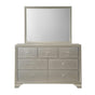 The Coralyssa allures with the glitz and glam befitting silver screen queens. Exquisite frame's metallic tone channels that Hollywood Regency flair you've been dreaming of. Tall upholstered bed with faux diamond tufting and gray textured cover. A silver paint finish and classic details set the right tone, while thoughtful design touches and storage pieces that are both beautiful and functional can be used to complete the entire ensemble.