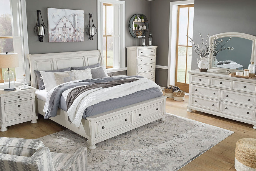 Elegant, timeless furnishings take your bedroom to the next level. Nothing does that better than this queen sleigh headboard. The antiqued white finish with a wonderful grain texture oozes sophistication, while the subtle curve of the headboard keeps things polished and poised. Dimensions: King Bed: 84"W x 88.78"D x 60"H Dresser: 66"W...