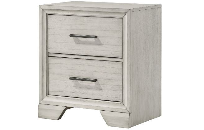 This bedroom set offers a sleek and stylish update to any space, featuring a white mist finish that commands attention while maintaining a sense of warmth and coziness. The bed stands as the stunning centerpiece, with its high, padded headboard upholstered in a plush fabric that invites relaxation and comfort. Flanking the bed are matching nightstands, providing convenient access to storage and display space. The set is rounded out with a spacious dresser, accented with a broad mirror that adds depth and brightness to the room. This set includes headboard, footboard, rails, dresser, mirror, and nightstand.