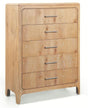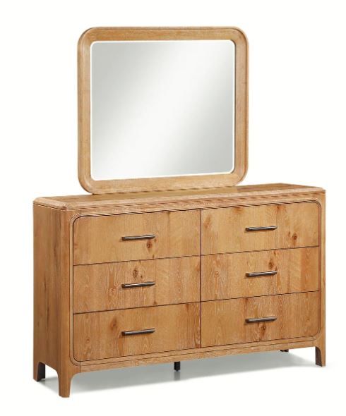 Elevate your space with this modern-rustic bedroom set. Featuring an upholstered headboard framed in warm, natural wood, it brings texture and charm to your room. Clean-lined storage pieces offer ample space and sleek metal hardware, balancing comfort with contemporary style. The perfect blend of cozy and refined.