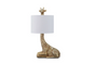 This giraffe lamp combines contemporary style with eclectic charm. The curious animal peeks out over the top of the shade, adding a playful touch to the safari-inspired vibe. For glam appeal, a goldtone finish completes the look. Made of polyresin with drum hardback fabric shade Goldtone finish On-off switch 1...