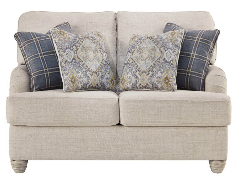 The Traemore Loveseat will brighten any living space with its linen upholstery and white washed legs. You will enjoy the comfort of this loveseat with its pillow-like cushions making it hard to leave, and the decorative pillows add a pop of color to the loveseat and give it a cozier feel in your home.