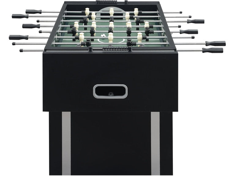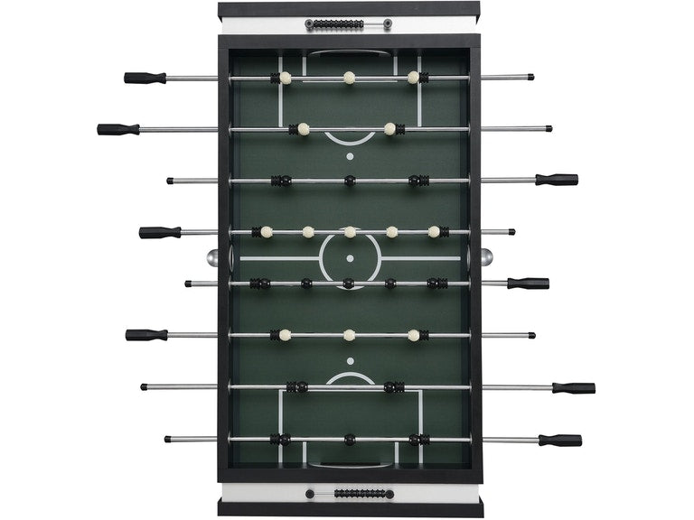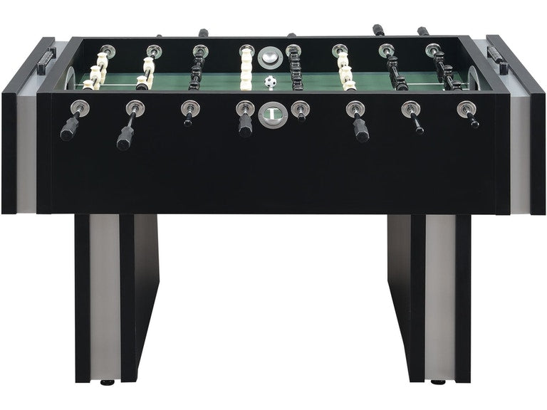 The aesthetically pleasing Clara foosball table provides an attractive, fun, and functional elements for your indoor or outdoor spaces. The stylish gaming table has a durable exterior with a beautiful contrast finish. The sturdy box legs and linear design combine stability and composition. The play-field was constructed to insure a true level surface for accurate table play. The stainless steel rods and easy spin bearings with counterbalanced players keep the ball in play for continuous fast paced action! This is the perfect addition to your game room for some friendly competition.