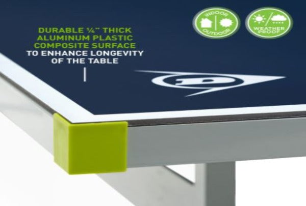 Bring an indoor sport-game to the outdoors and start having fun and making great memories with the ping pong table. This official-sized table is built with special aluminum-composite materials that will protect it from rain, sun and all-weather conditions. Stainless steel legs, aprons and support undercarriage keep your table sturdy and stable.Fast SetupAssembly is quick and easy since 95% of the table is pre-assembled for you