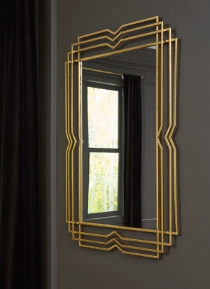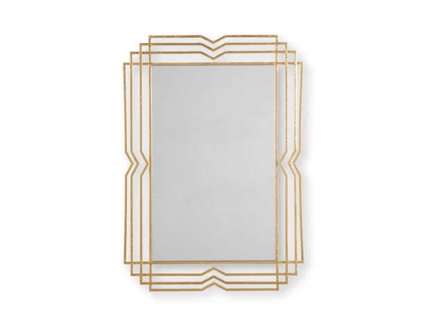 This eye-catching accent mirror elevates your home decor with its modern geometric design and glamorous gold foil finish. It's a stunning statement piece for an entryway, living room or bedroom, adding a touch of sophistication to brighten up your space.