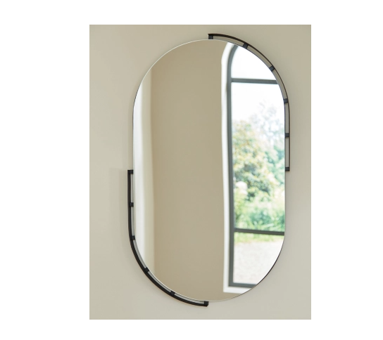 Update your home or office with contemporary appeal. This accent mirror is subtly embellished, with black metal accents bordering its striking oval shape. Make a statement, curate a quirky collection, or use it to make your space appear larger—the design ideas are endless.