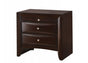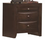 Maintain a clean and uncluttered look in your master or guest bedroom with this contemporary nightstand. Drawers feature dramatic beveled front and polished silver look metal knobs for a sophisticated and elegant storage piece. Group with the matching chest and dresser for functional bedroom storage that reflects your contemporary style.