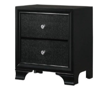Introduce a bold touch of glam into your space with this gorgeous black finished Nightstand. With crystal-like drawer pulls, dark color and sleek lines, this Nightstand will create an impressive dark glam feel in your bedroom.