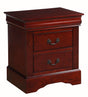 The Philip Cherry Nightstand is an enchanting addition to your sleeping space. Made with select hardwoods and a cherry finish, this piece is warm and matches well with any décor. This piece has beautiful features such as simple molding at the top, metal bail handles and bracket feet