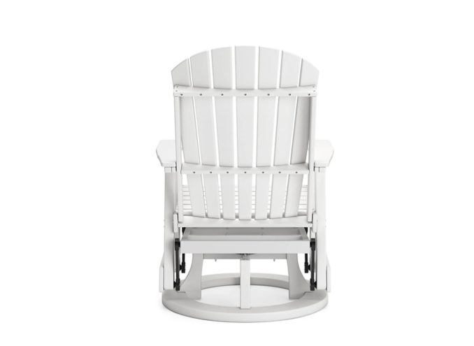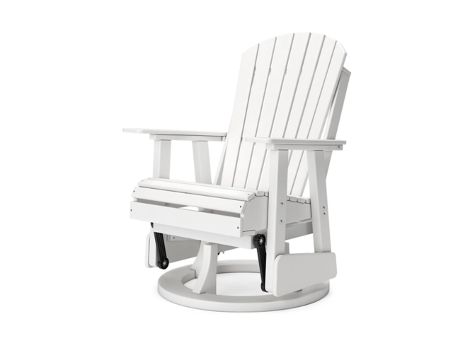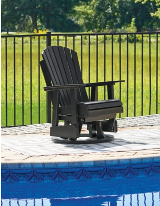 Drift away from everyday worries and into outdoor bliss with this swivel glider chair. Dressed in a smart black, the Adirondack-inspired design has a contemporary feel. It weathers sunny summer days and cozy winter nights with durable MEGA-TUFF® HDPE material. When it comes to form and function, the chair's 360-degree swivel and rain-shedding slatted design simply go with the flow.