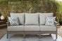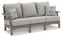 It’s the dawn of a new day for gray. Embrace the style trend with this outdoor sofa. Crafted of HDPE material that combines the exceptional durability and weather resistance you need with the “wood look” you love, this comfortably cushioned sofa takes outdoor living to a whole new level. Rest assured, the thick seat and back cushions and throw pillows are wrapped in our exclusive Nuvella® high-performance fabric that’s fade resistant, stain resistant and a breeze to clean.