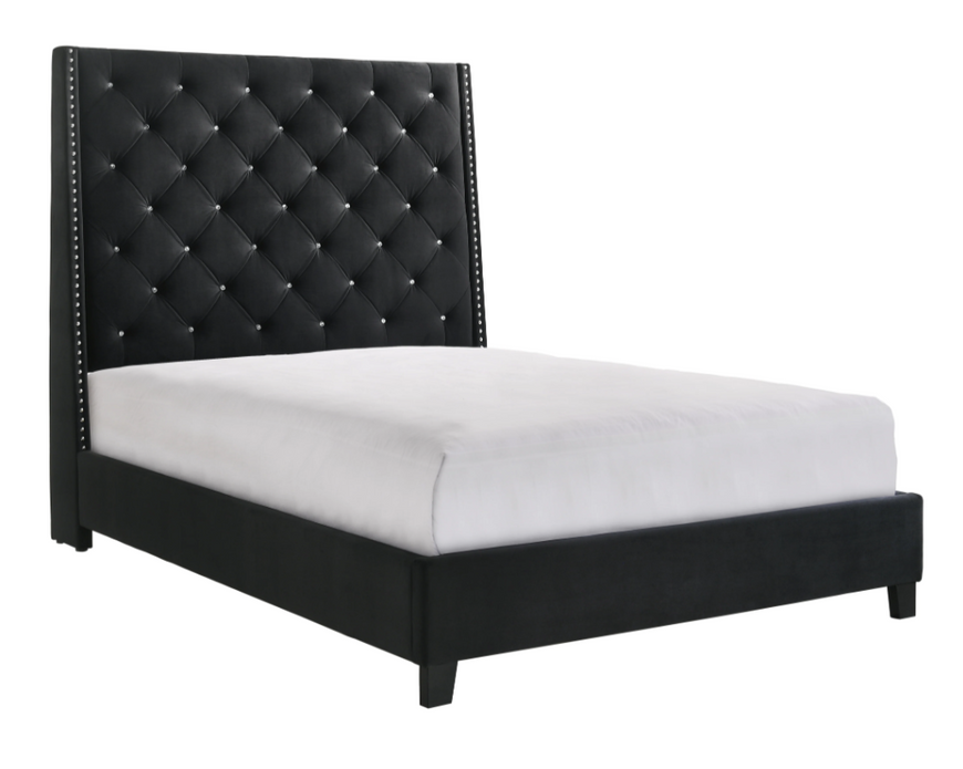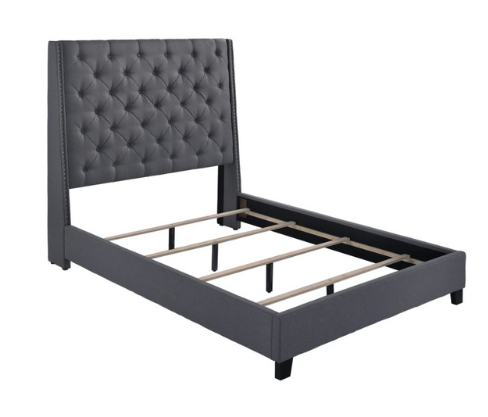 The Chantilly Queen Size Upholstered Bed makes for a striking and beautiful addition to any bedroom! This fully upholstered bed features a button-tufted panel headboard accented with nailhead trim and a contrasting low-profile style footboard and rails. Instantly add plenty of eye appeal and style with the amazing Chantilly bed!