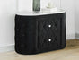 Indulge in the epitome of luxurious comfort and innovative design with this exquisite bed, a true masterpiece for those who appreciate both form and functionality in their sleeping quarters. Boasting a majestic, deeply tufted headboard that extends all the way to the edges, this bed is upholstered in sumptuous black velvet, offering a touch of opulence to any bedroom setting. The footboard features an integrated television lift mechanism, seamlessly blending entertainment with relaxation. Additionally, a built-in electric fireplace enhances the ambiance and provides a cozy, warm glow that invites you to unwind in style. The design is completed with subtle gold accents on the feet, adding a dash of elegance. This bed is perfect for those seeking a luxurious retreat that combines modern technology with sophisticated design elements to create an unparalleled bedroom experience.