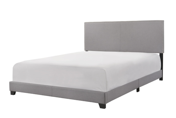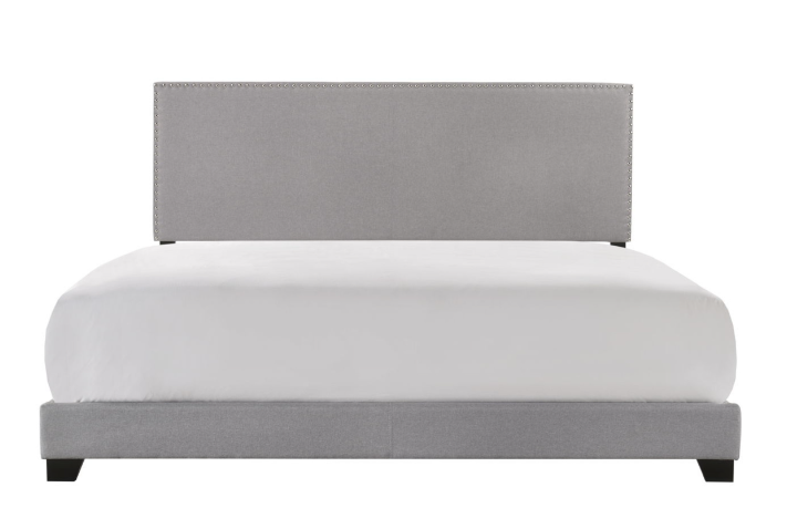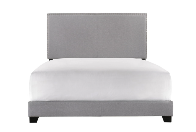 This upholstered bed showcases a classic wingback silhouette for plenty of French country style in your bedroom. The frame is made from solid and engineered wood with a gray finish, and it's wrapped in gray polyester fabric for a versatile look. Foam filling in the headboard gives you the right amount of cushion as you read or relax before bed. Plus, it's accented with button-tufted details and nailhead trim for an extra layer of charm in your space. This bed has center legs that provide additional stability.