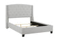 Weatherly upholstered queen bed comes in a dove grey, grey and black finish and features a button tufted headboard, two wings with accent nail head trim, and sturdy wooden legs. This piece will surely add style to any bedroom. BOX SPRING NEEDED WITH THIS BED