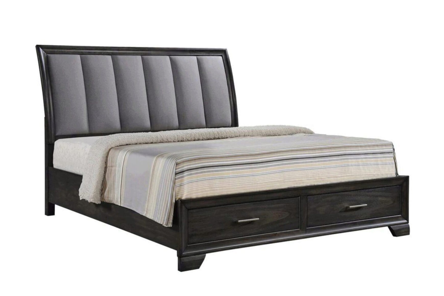 The handsome bed will create a bold, contemporary atmosphere in your room. The finish is dark yet vibrant and pairs well with the clean and straight-angled case designs. The highlight of the collection is surely the ultra-plush upholstered headboard, which adds comfort and warmth.